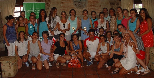| Las participantes en el Torneo Femenino de Pádel tras la entrega de premios |