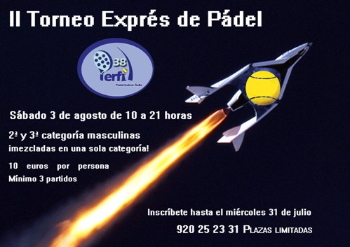 @deportesavila / El próximo sábado 3 de agosto se celebra en Perfil 38 el segundo Torneo Exprés de Pádel de este verano. En esta ocasión los participantes son jugadores de segunda y tercera categorías masculinas, hasta un total de 24 parejas, divididas en 8 grupos.
