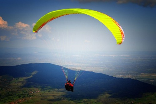 | Un parapentista después de despegar de Peña Negra |