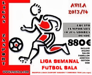 @deportesavila / El plazo de inscripción para la II Liga Fútbol 7 Semanal y la Liga de Fútbol Sala Semanal, ha quedado ampliado por la organización del Club Deportivo Zasport hasta el sábado 5 de octubre. Las plazas son limitadas, subvencionando Deportes Alfonso con 150 euros a los equipos que se apunten a las mismas.
