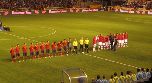 | España y Dinamarca forman antes de comenzar el partido |