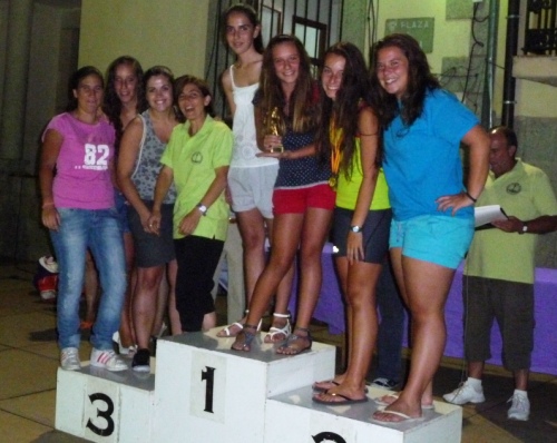| El equipo femenino de la C.D. Cebrereña recibió uno de los trofeos de campeones |