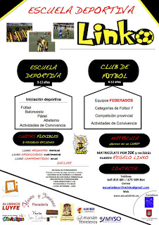 La matrícula está abierta hasta mediados del mes de septiembre, pudiendo tramitarla en su página web: www.escuelalinko.es, en los teléfonos 645 835 881 y 675 589 864, el e-mail: escueladeportivalinko@gmail.com o en la oficina Linko ubicada en el campo Adolfo Suárez, todos los martes y jueves de 17:00 a 18:00h.