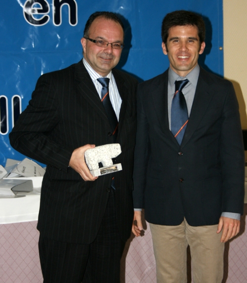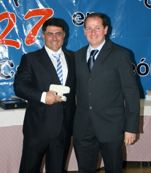 Miguel Ángel Abad recibiendo una placa del presidente de la FETECAL