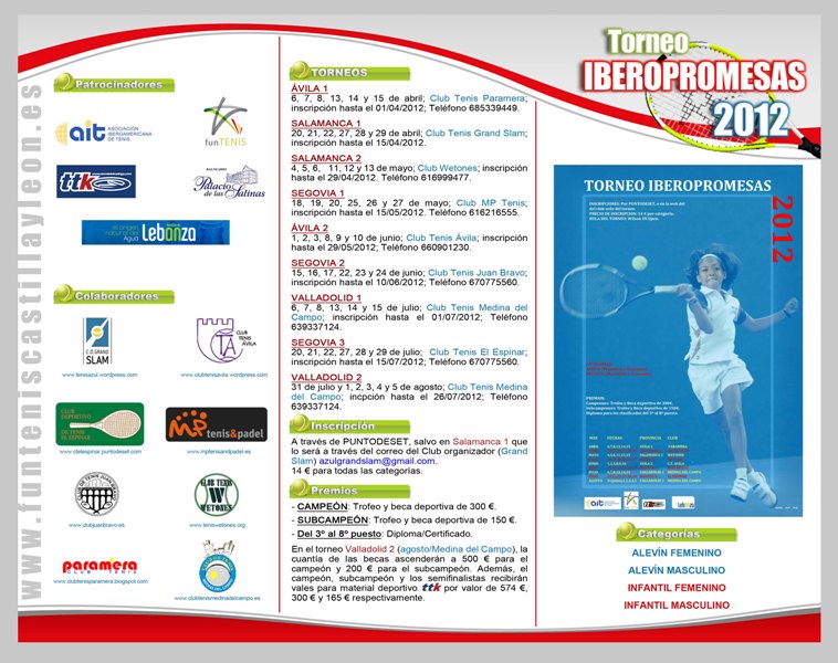 López Manrique / Entre abril y agosto, la delegación de Castilla y León de Funtenis (Fundación para la Promoción y el Desarrollo del Tenis Español e Iberoamericano) en colaboración con ocho clubes de tenis de la comunidad autónoma, pone en marcha el Torneo Iberopromesas 2012, que consta de nueve pruebas, la primera de ellas a cargo del Club de Tenis Paramera.