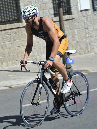 Si el agua lo había amortiguado hasta entonces, el calor lo empezaron a notar los 85 participantes que se dieron cita, quienes tuvieron que acometer tras la primera transición una carrera de 20 kilómetros de ciclismo, dando cinco vueltas a un duro circuito por los alrededores del Centro de Congreso Lienzo Norte. Ahí el más rápido era el sevillano Alejandro Campoy en 33’35” y cinco segundos más hacía Alfonso Sánchez, si bien la lucha por hacerse con la victoria definitiva estaba entre Alejandro Cañas y Camilo Puertas.